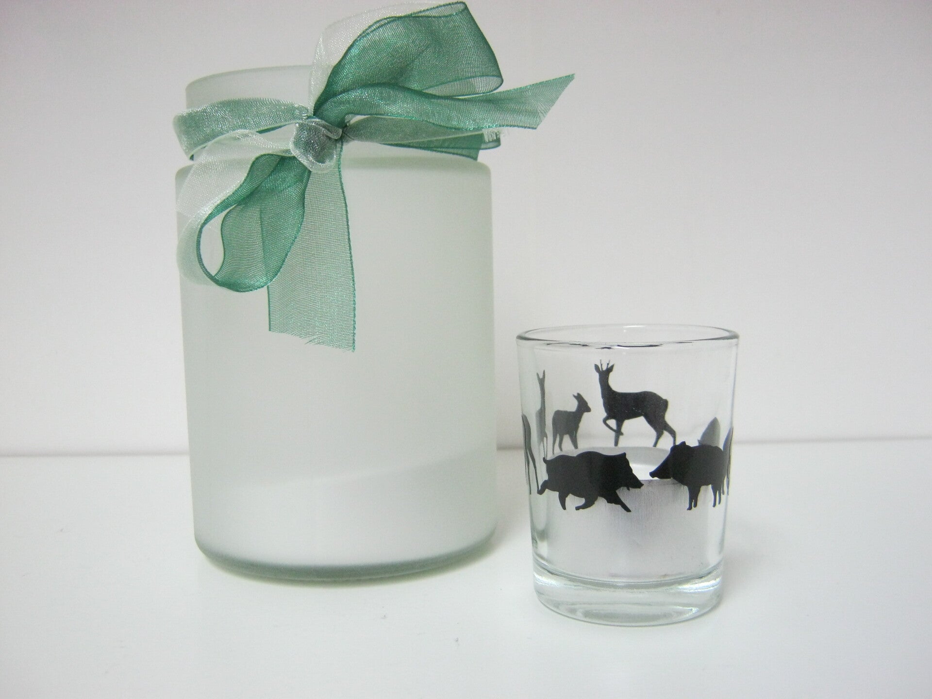 inkl. 1 Teelichtglas mit Waldtieren Höhe 8,5 cm Ø 7 cm